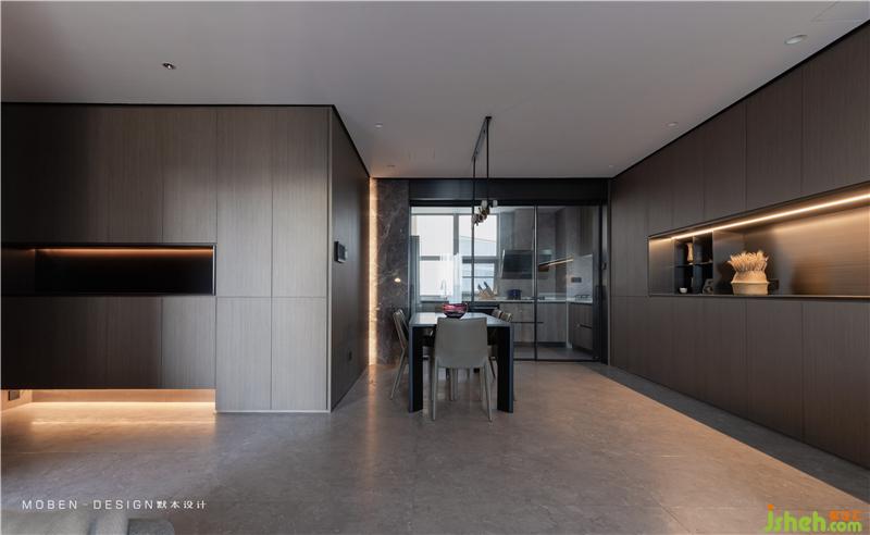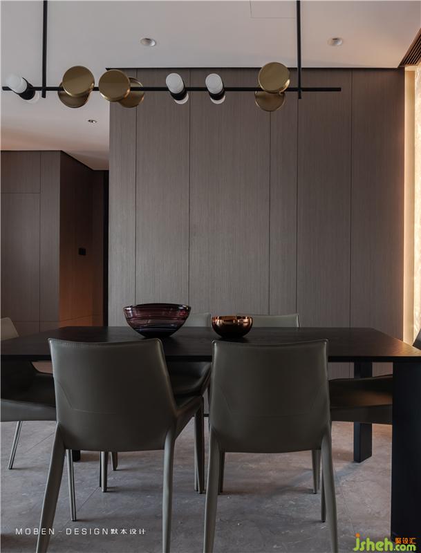 餐廳暗角做了線性燈光處理,使暗角改變成營造氛圍的亮點