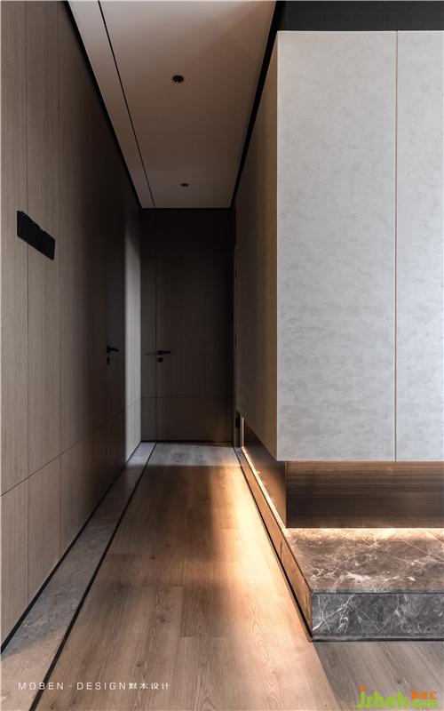 簡約大平頂、木質(zhì)感柜體、石材質(zhì)感地面、構(gòu)成沉穩(wěn)大氣的空間氛圍