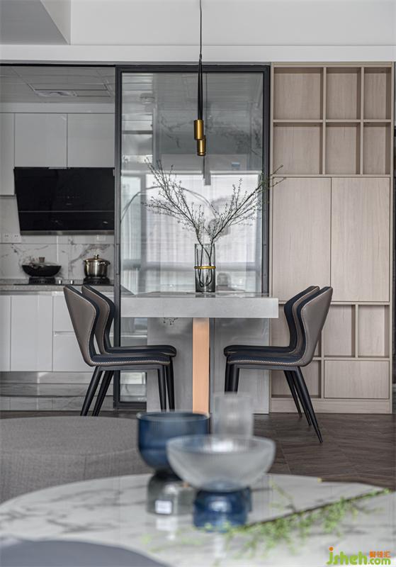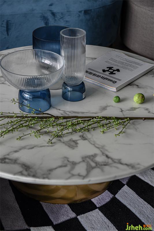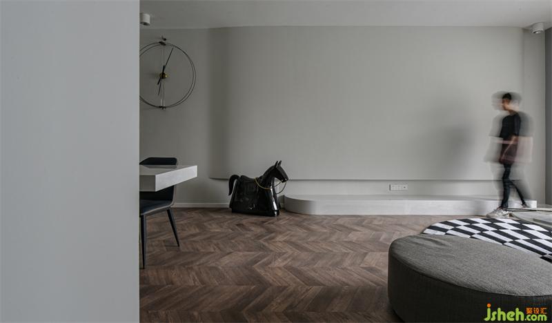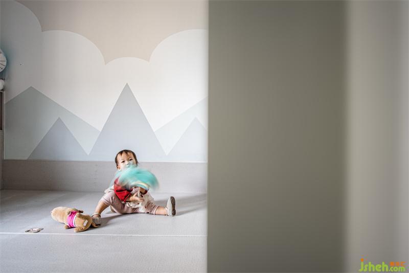 淺灰色的主體色讓空間沒有白色的平淡多了幾分文藝的清晰,幾件藍色的家具的點綴就像透過云朵若隱若現(xiàn)的藍色天空,這樣的空間泡上一杯咖啡放一段音樂和家人一起靜靜的享受著只屬于甜蜜的時光。
