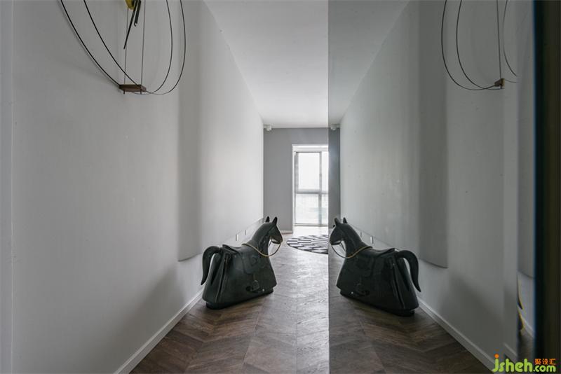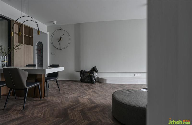 在空間的造型上我們希望簡潔明快,客廳墻面我們去掉了明確的電視墻,通過預留的大白希望能他們一家能慢慢的將它填滿。等小朋友大了也可以將這個墻面增加激光電視投屏,用時間來換取不同的空間需求這是我們對待本次空間的態(tài)度。