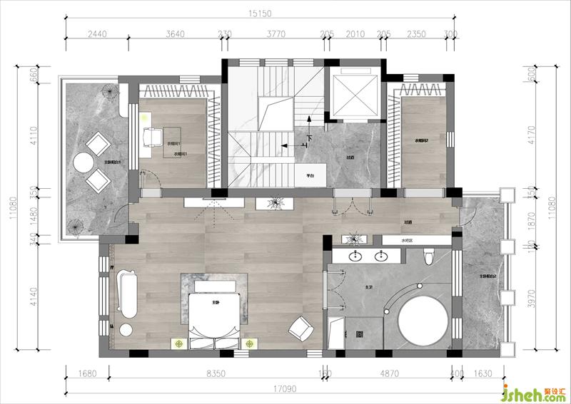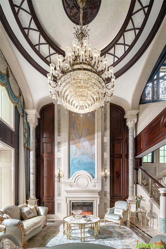 本案中設(shè)計(jì)師以中西貫通的靈巧構(gòu)思,選用材質(zhì)與色彩肌理極富質(zhì)感的建筑裝飾風(fēng)格,在空間別墅設(shè)計(jì)中構(gòu)建出有生命力和傳承力的古典城堡生活場景。