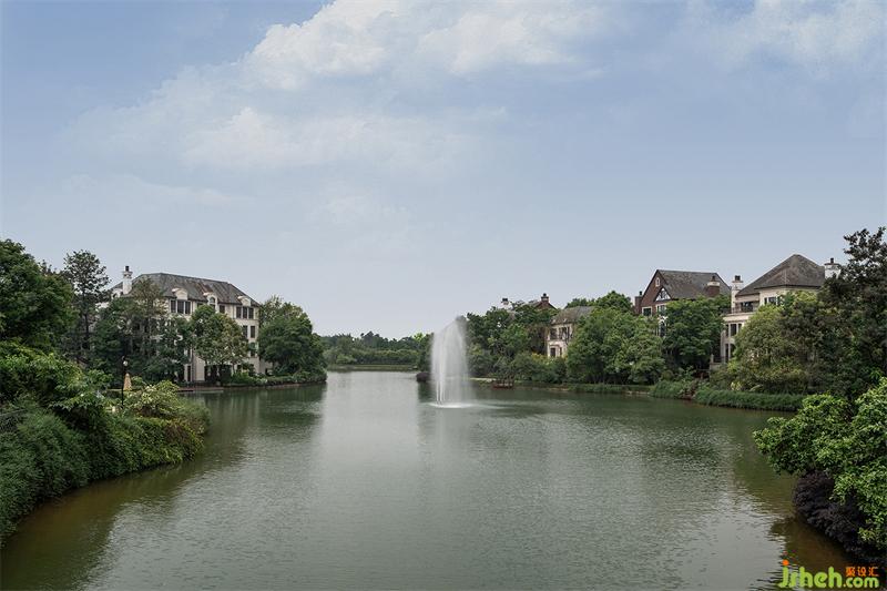 從車馬喧囂的都市進(jìn)入墅區(qū),湖泊倒映出一彎拱橋,是歸家的過渡,人們從社會角色轉(zhuǎn)換到家庭角色。從城市紛繁喧囂的“動”轉(zhuǎn)向家庭溫馨暖意的“靜”,建筑重新梳理人們的情緒。