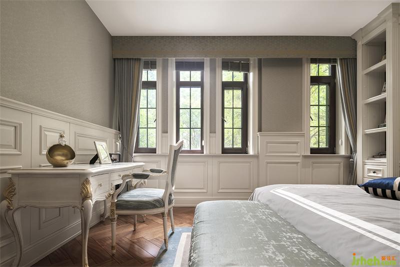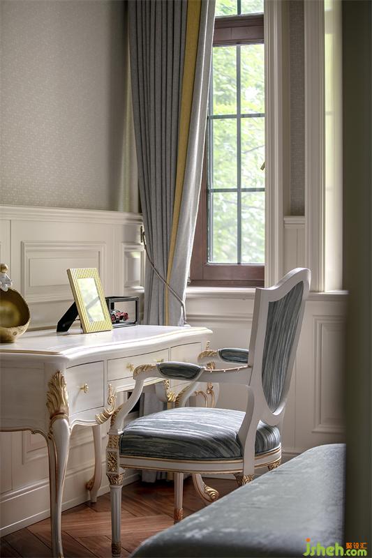 兒子房的暖白色調(diào)帶來(lái)安靜舒適的體驗(yàn),冷靜沉穩(wěn)的蔚藍(lán)拼接低調(diào)的淡藍(lán),窗外四季景致流轉(zhuǎn),透過玻璃照進(jìn)室內(nèi),給空間增添了許多活力。