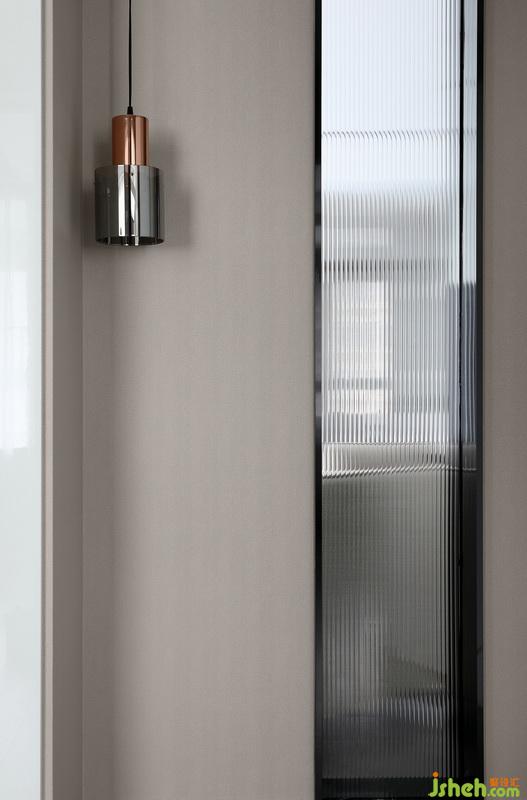 一盞燈,豐富了空間,隔而不斷的玻璃裝飾,打破了實墻的單調感。