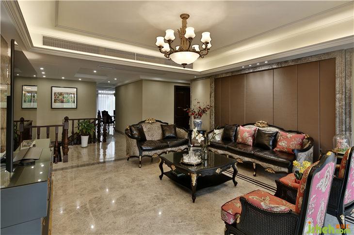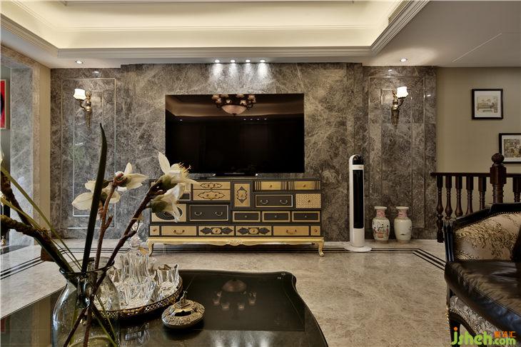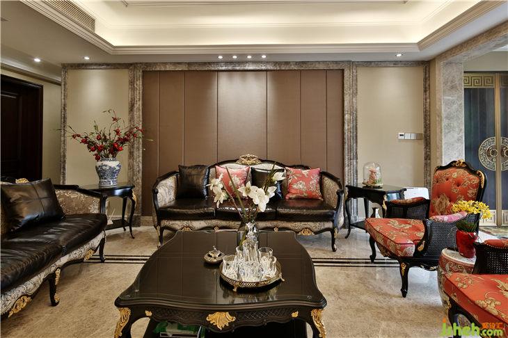 客廳的墻面運(yùn)用了米白色的乳膠漆,電視背景墻是用大理石邊框和咖啡色的硬包做成的,這讓墻面與背景墻更好的融合在一起。沙發(fā)和茶幾雖是色彩深沉的木質(zhì),但其造型秀美再加以色彩跳躍的紅色抱枕和布藝加以點(diǎn)綴,令整個(gè)空間節(jié)奏充滿變化又不失和諧。