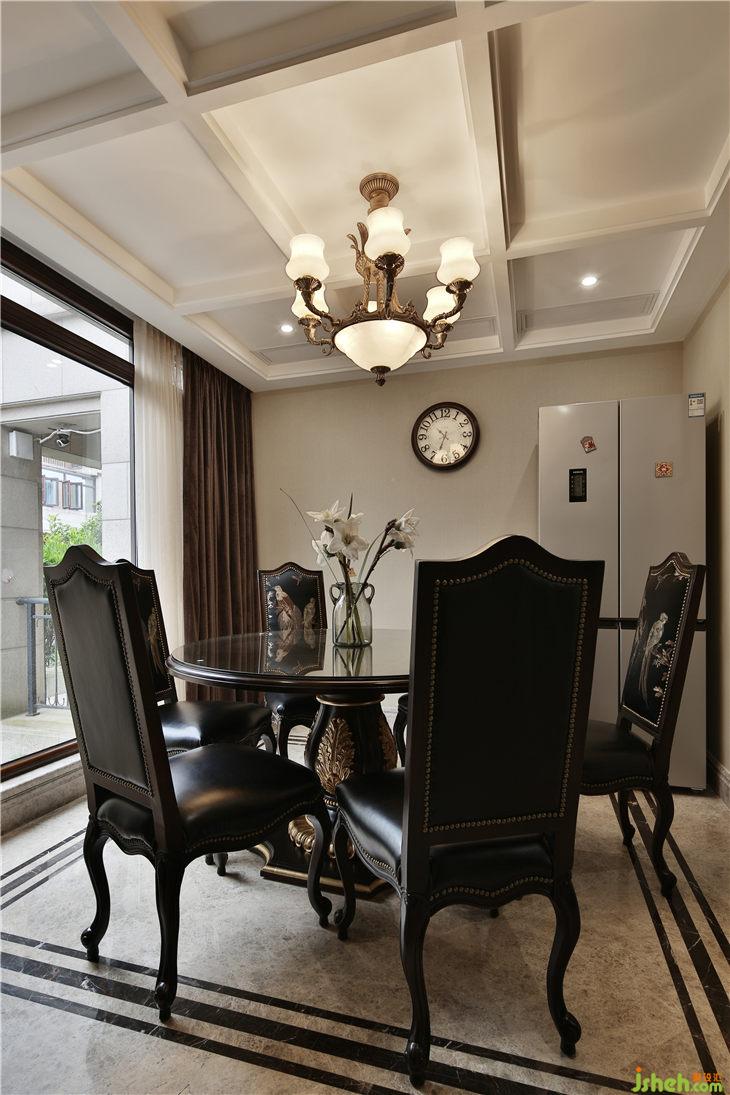 餐廳是家居生活的心臟,不僅要美觀,更要注重實(shí)用性、整體性。餐廳的燈光很重要,既不能太強(qiáng)也不能太弱。本案燈光以溫馨的暖黃色為基調(diào)。
