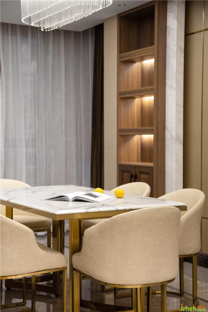 本案結(jié)合白、灰、香檳金等大氣典雅的調(diào)子,在設計方向從“輕奢”入手。正如馬蒂斯所說,“繪畫應該是純粹美感經(jīng)驗的體現(xiàn),其目的不在思想性和喻意,而在于線條、色彩、形態(tài)的愉悅和舒適。色彩與線條都是力量,創(chuàng)造的秘密就在于利用并平衡這些力量?!边@句話挪用到設計也是極為合適。在白色加香檳金的基礎上點綴油畫藍,使整個空間更具有詩情畫意。仿佛置身于春季的巴黎香榭麗舍的街道,爛漫而風情。
