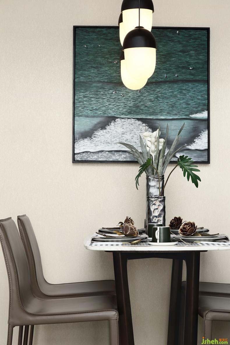 在整體布局上,設計則普遍運用了點線面的組合,圓形的吊燈、布藝座椅和鋼制玻璃桌,抽象的掛畫、沙發(fā)等,于簡約的外在體現(xiàn)中充滿了復雜多變的創(chuàng)作組合。