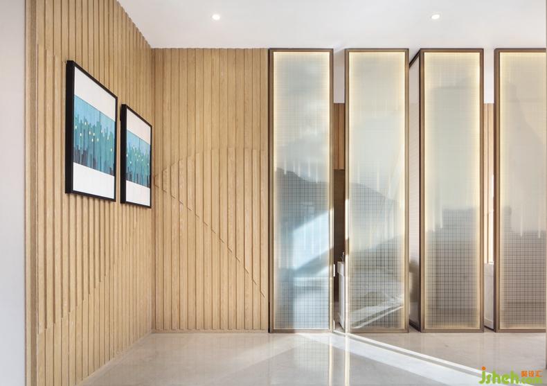 光是空間最好的組成部分,以純凈之態(tài)滲透進(jìn)廊道,變幻出美妙的光影韻律。簡(jiǎn)約的裝飾畫、山水?dāng)[件與木格天花自然相接,既起到點(diǎn)睛之筆,又在精致中不失古樸氣息。室內(nèi)設(shè)計(jì)師對(duì)于空間的感動(dòng),在一天的光影變幻中,慢慢展開。