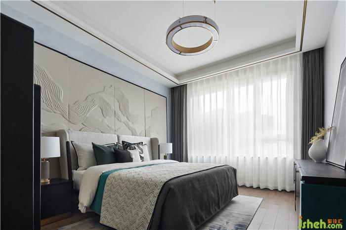 主臥延續(xù)整個(gè)空間優(yōu)雅溫潤的調(diào)性,幾許水紅輕盈而靈動(dòng)。陽光自紗窗透射而入,樣板房設(shè)計(jì)光影入“山水”,胸中有丘壑,可溫柔旖旎,也自在閑適。
