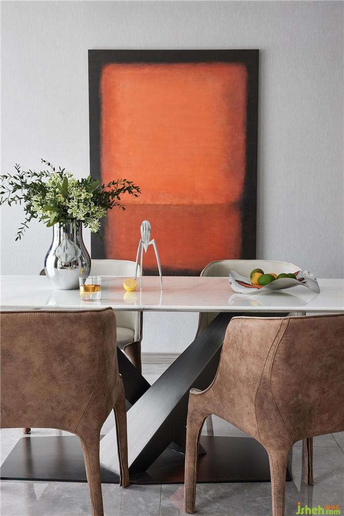 溫暖的顏色蘊(yùn)藏著生命力,本案空間以抽象繪畫為點綴,糅合不同視覺形態(tài)的色彩,將藝術(shù)注入生活,與熱切一同生長。