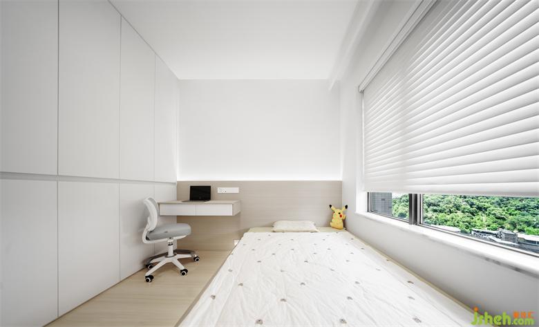 房間采用木色床靠以及地臺(tái)床的設(shè)計(jì),空間顏色室內(nèi)設(shè)計(jì)師搭配更自然,更溫馨。