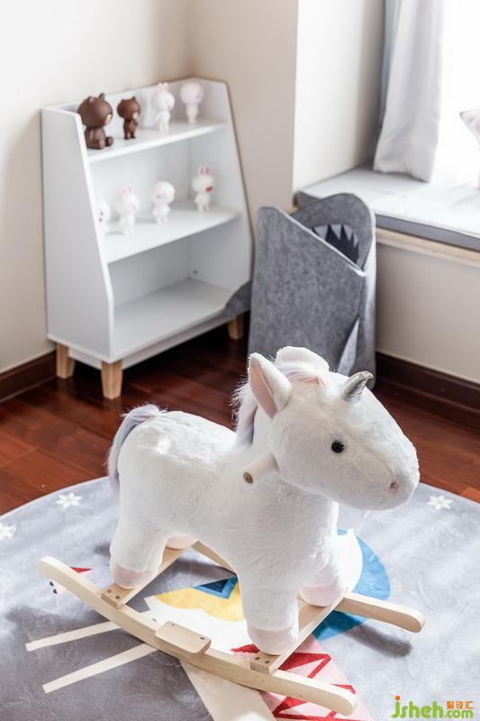 前期并沒(méi)有兒童房的設(shè)計(jì),在家具基本選購(gòu)?fù)瓿傻臅r(shí)候,突然業(yè)主告訴我可以準(zhǔn)備兒童房了,因?yàn)樘呀?jīng)有了小寶寶了!接著就有了,木馬、地毯、兒童床。不管你是像小公主還是小王子,這里就是你愛(ài)的港灣。
