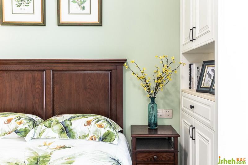 我們在設(shè)計(jì)的過程中,跳出了傳統(tǒng)的配色框架,已灰綠色床頭背景和綠色棉質(zhì)床品相呼應(yīng)配以黃色裝飾提亮整個(gè)空間為方便讓人平時(shí)放置一些常用藥品和物件在靠窗一側(cè)增加了一個(gè)儲物柜,并在靠窗位置設(shè)計(jì)了與原飄窗高度的儲物矮柜擴(kuò)大飄窗,變成一個(gè)多功能的設(shè)計(jì),既能儲物,又能喝茶休憩。在松軟的坐墊上,沏上一壺茶,享受午后閱讀時(shí)間,盡情沐浴溫暖陽光。
