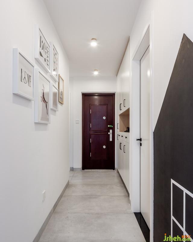 白色鞋柜簡潔而明亮,時刻呼喚主人的歸來。房子黑板墻,是孩子記錄成長的樂園,肆意揮灑著童真和快樂。北歐調(diào)調(diào)的組合照片墻,為過道增添了一番情趣。