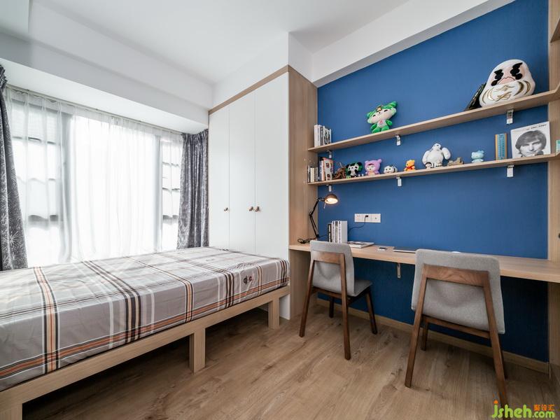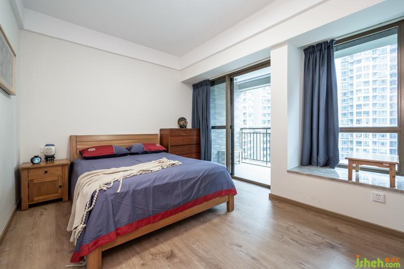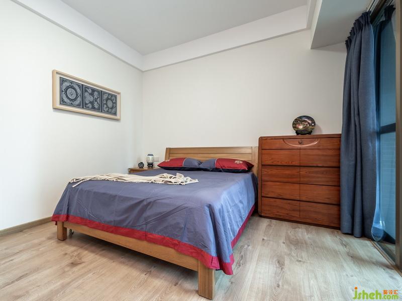 舊居帶過(guò)來(lái)的家具并不會(huì)與整體簡(jiǎn)約格調(diào)違和,細(xì)木邊框裱好的從鳳凰帶回的蠟染、深藍(lán)色棉麻窗簾、與陪伴多年的老木頭,讓老人的新臥室穩(wěn)重又素凈。