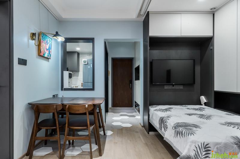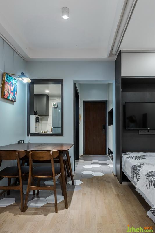 深淺灰白色六角磚如行云流水般呈現(xiàn)出來,拼接木色紋路自然木地板,自帶時尚與精致;踏進家門那一刻,感受到卸下所有的疲憊,可以活一個比較簡單,比較直接比較充滿家庭氣息的生活。