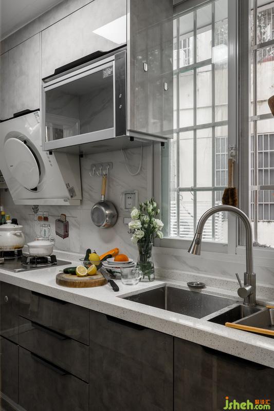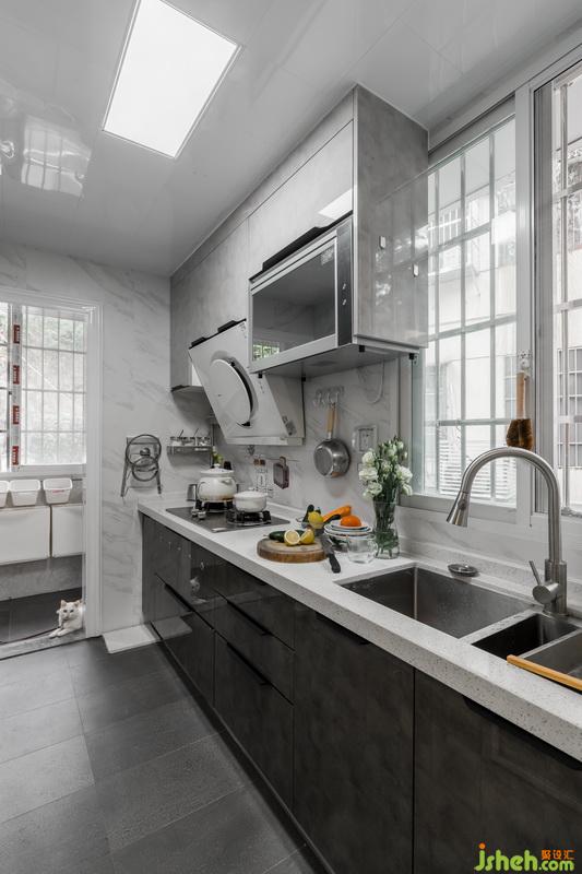 將原有的陽(yáng)臺(tái)空間改為中廚區(qū),油煙大也不會(huì)影響客廳,而客廳原來(lái)的廚房則改為西廚區(qū),滿足女主人烘培的愛(ài)好。我們還將原有轉(zhuǎn)角位置獨(dú)立劃分出來(lái),作為獨(dú)立的寵物空間。因?yàn)檫@個(gè)位置采光通風(fēng)包括后山的風(fēng)景都還不錯(cuò),男主人喂貓的同時(shí)在這里抽煙也是不錯(cuò)的選擇。