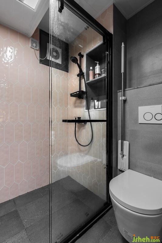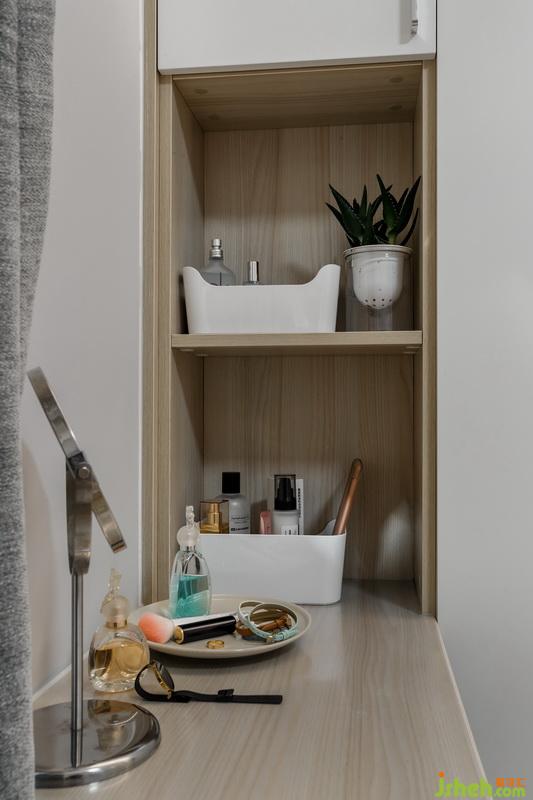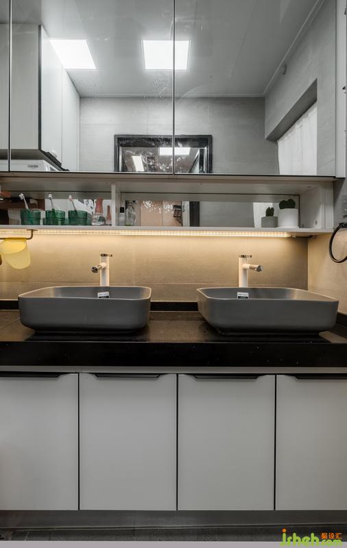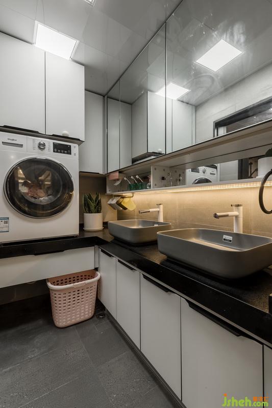 改動(dòng)衛(wèi)生間進(jìn)門位置,離臥室門更近,動(dòng)線更合理。將原有的大衛(wèi)生間做了干濕分離的處理,一部分作為洗衣房兼洗漱區(qū),一部分作為衛(wèi)生間區(qū)域。因?yàn)橹挥芯植砍料洌隈R桶方面我們選擇了壁掛式馬桶,壁掛式馬桶的墻排方式解決了馬桶改位的排污問(wèn)題,同時(shí),利用馬桶的包水箱位置,做了置物壁龕,一舉兩得。