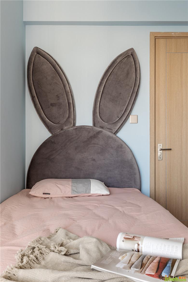 次臥的兔子床是主人給閨蜜精心挑選的,同時也滿足自己的少女心。整個空間的色調(diào)也是以灰藍色為主,清新淡雅。大大的L型飄窗是全屋風(fēng)景最好采光最好的位置了,偶爾周末閨蜜過來蹭住,時而在飄窗上閑聊,時而兔子床上悄悄話,幸福而知足的生活也莫過于此了吧。