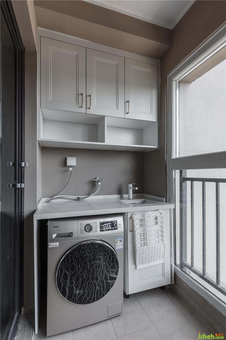 陽臺一邊是洗衣機和洗衣池,滿足日常生活所需。