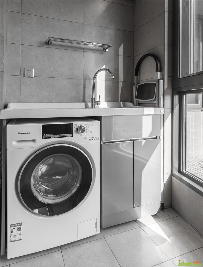 深灰色紋理的墻地磚融合黑色啞光的浴室配件,更能突出現(xiàn)代的感覺。裝修公司