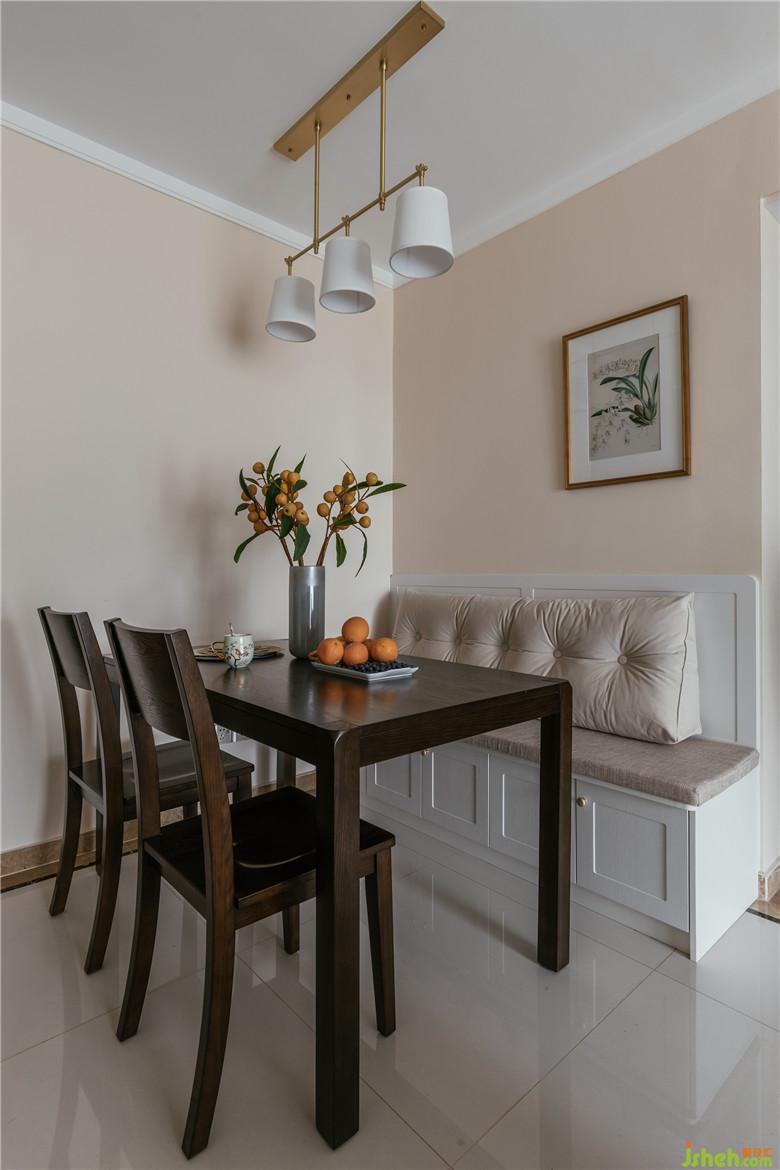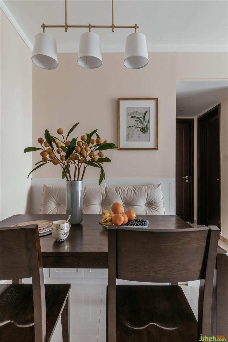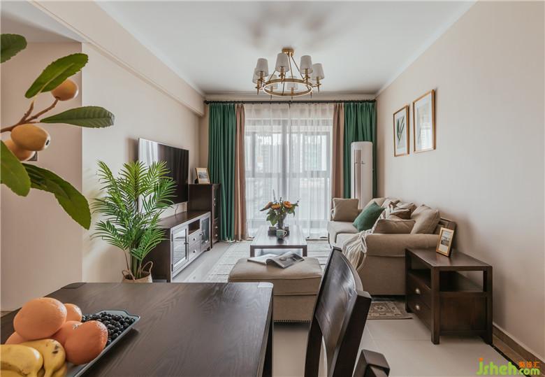 客廳:軟軟糯糯的奶茶色,是阿蓮的最?lèi)?ài),于是裝修公司用在了墻面上。舒適的淺色布藝沙發(fā),圓角的木質(zhì)家具,一深一淺,一輕一重,張弛有度。窗簾、抱枕和裝飾畫(huà),悠哉悠哉地彼此呼應(yīng)著,青翠欲滴。裝飾畫(huà)的外框獨(dú)得我心,做舊的金色畫(huà)框,有些斑駁的印記。為這個(gè)空間帶來(lái)一絲復(fù)古的感覺(jué)。時(shí)光易老,不負(fù)流年。