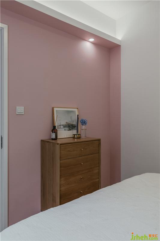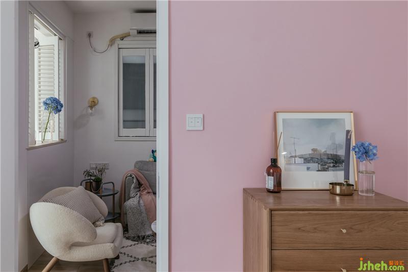 主人房墻面采用男主喜歡的少女粉,充滿少女感,迎面而來的都是青春的氣息啊。