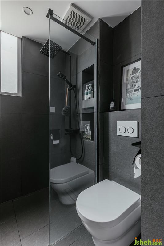 原有衛(wèi)生間空間太小,只有2平方多,根本沒有辦法做到干濕分區(qū),現(xiàn)方案中改動了主人房的房門,從客廳進(jìn)入,把洗手臺外置,做成一個獨(dú)立的盥洗區(qū);里面的空間做成淋浴區(qū)和壁掛式馬桶,從而做到了干濕分區(qū)。