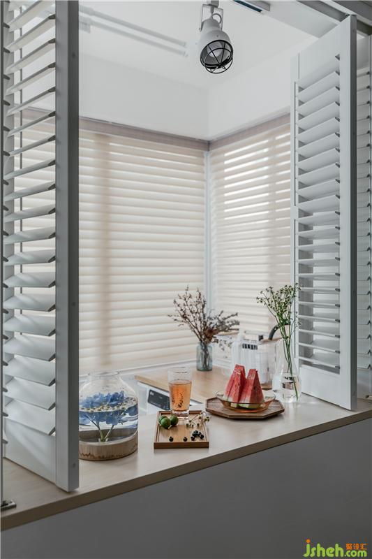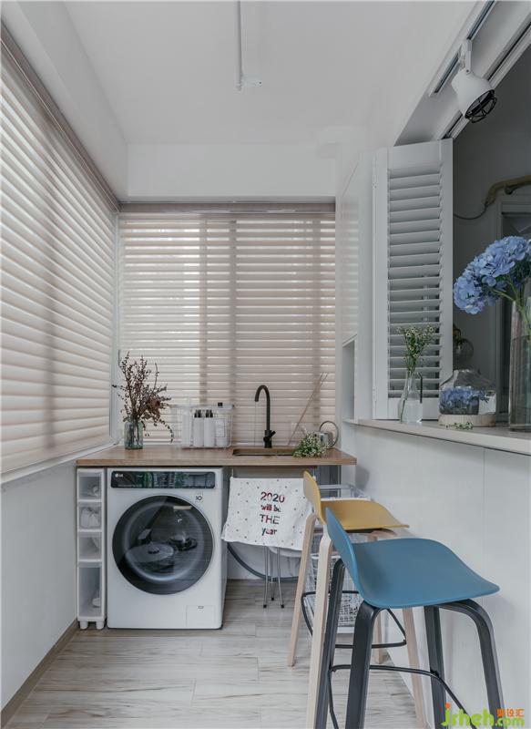 陽臺,也是年輕夫妻最喜歡的角落。除了有個儲物吧臺,實用美觀,還有一個很重要的功能就是:陽臺變成了寵物區(qū),人和寵物都有既可獨(dú)立,也可互通的空間。洗衣機(jī)和洗衣池安排在這里,使用起來非常方便。