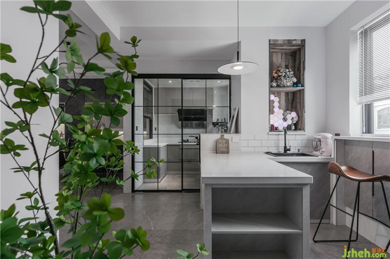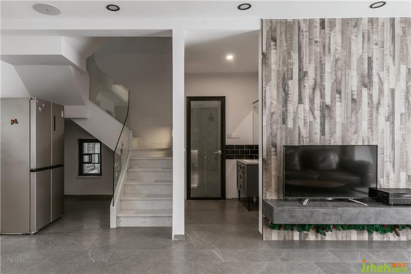 一樓的樓梯間開了一個(gè)窗洞,窗戶的設(shè)計(jì)是上下式,主要是考慮這里是通道,不能影響正常的通行,而這里的窗洞設(shè)計(jì)最初是為了增加樓梯間與窗戶后面的開放式洗手盆的通風(fēng),最后發(fā)現(xiàn)也增加空間的朦朧與美感。