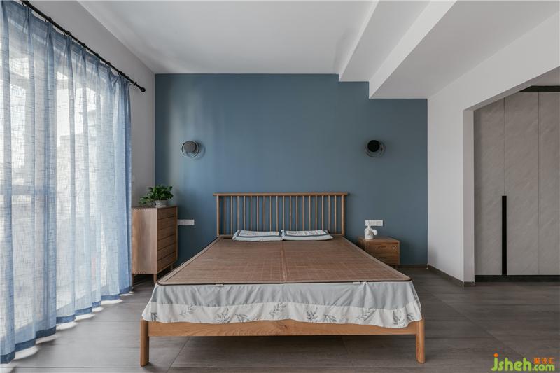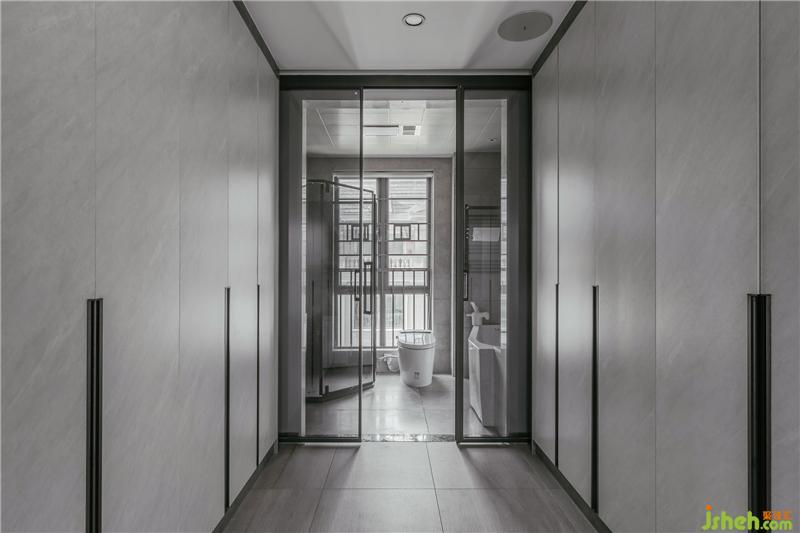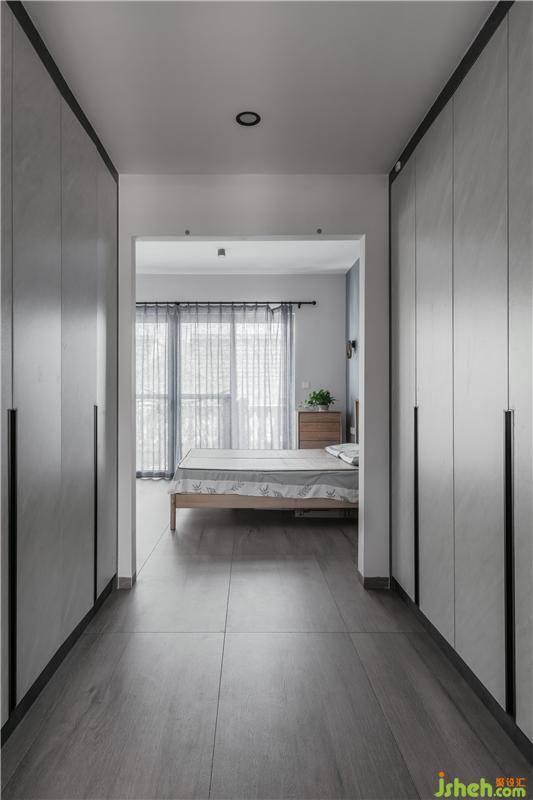 灰藍(lán)色的主人房背景墻,只有小小的二個(gè)壁燈進(jìn)行了點(diǎn)綴,這是女主人想要的空間,干凈與明亮。衣帽間左邊為女主人的衣柜,右邊是男主人的衣柜,這樣的分開大大增加了夫妻的情感,減少了爭(zhēng)執(zhí)的概率,哈哈哈,設(shè)計(jì)能改變生活習(xí)慣,能提高夫妻的感情,真的,不騙人。