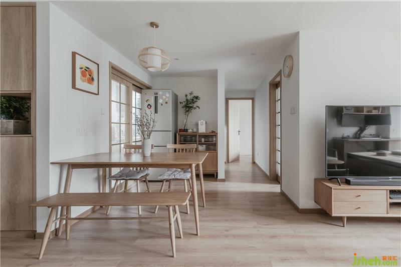 原來的餐廳放置在客廳的左側,浪費空間,且分區(qū)不明顯。