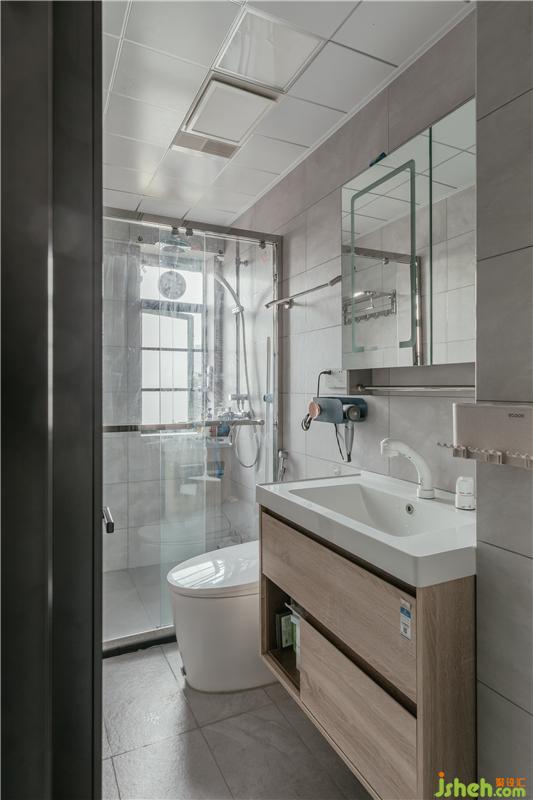 把原有的一面墻向外擴(kuò)了一部分,把洗手臺(tái)外置,做了干濕分區(qū)功能。視覺上看起來也不會(huì)覺得擁擠。