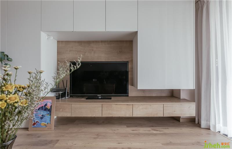 利用了一個(gè)凹位設(shè)計(jì)了一個(gè)整體的電視背景柜,最大限度的提升了空間儲(chǔ)物功能。