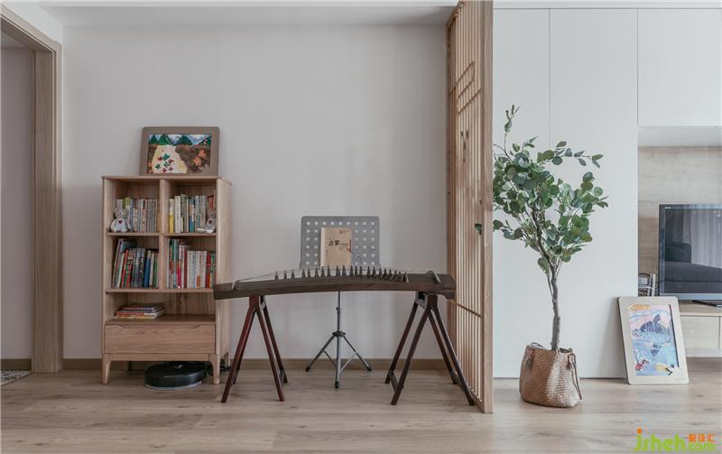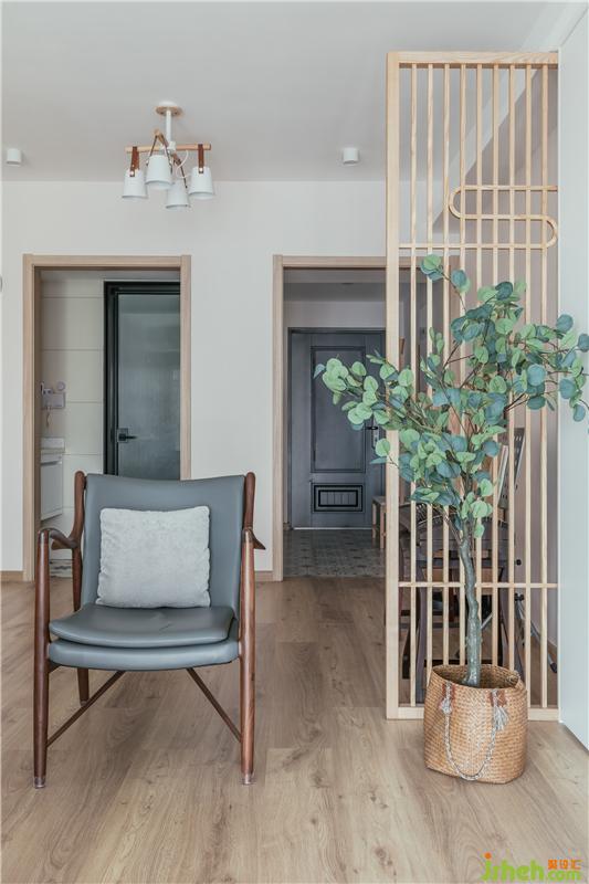 3、過長的過道設(shè)計(jì)一個(gè)休閑區(qū),使用木質(zhì)屏風(fēng),光線可直接進(jìn)入,形成一個(gè)喝茶,看書,彈琴的一個(gè)愜意空間。