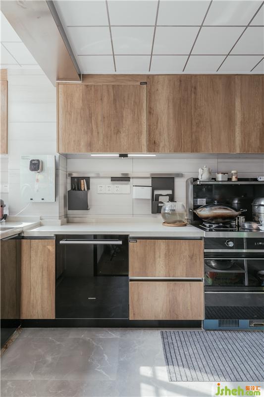 原本的廚房區(qū)域使用面積狹小,所有我們把生活陽(yáng)臺(tái)規(guī)劃到廚房里。廚房空間擴(kuò)大,設(shè)計(jì)L型的櫥柜,利用率也增加了。