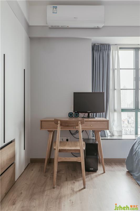 為了滿足兩個(gè)小孩的寫作需求,往主人房的套衛(wèi)移了一點(diǎn),做了一個(gè)衣柜書桌一體柜,滿足了收納,也滿足了寫作需求。