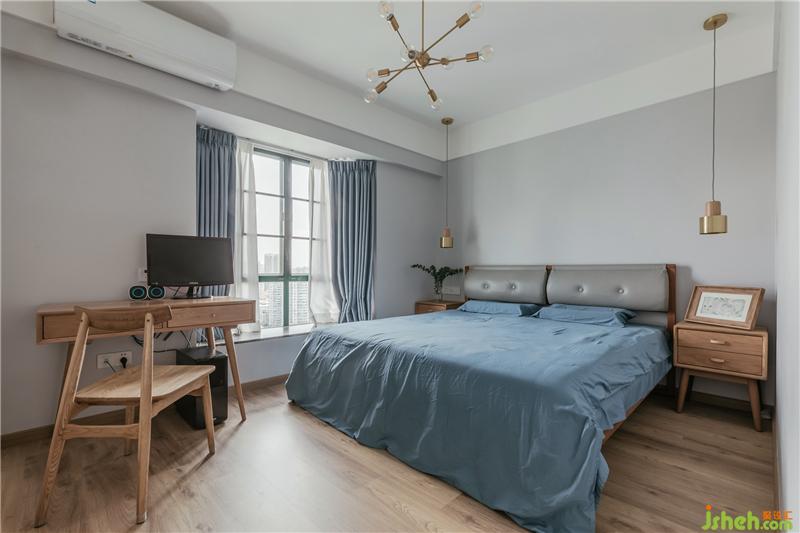 主人房借用了長(zhǎng)輩房的一點(diǎn)空間,做了一個(gè)大衣柜進(jìn)行收納,滿足了夫妻兩人的日常居住需求。臥室延續(xù)外部空間的設(shè)計(jì)元素,作為休息區(qū)域,塑造的氣氛更為靜謐優(yōu)雅。原木、棉麻、綠植也在經(jīng)過紗簾過濾后的陽(yáng)光下顯得更加柔和。