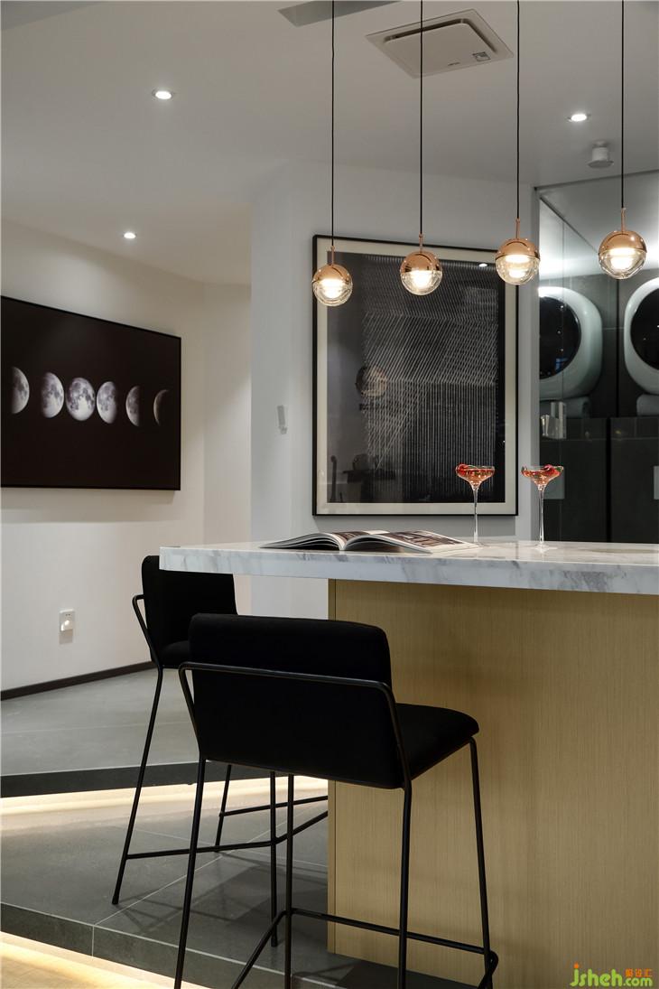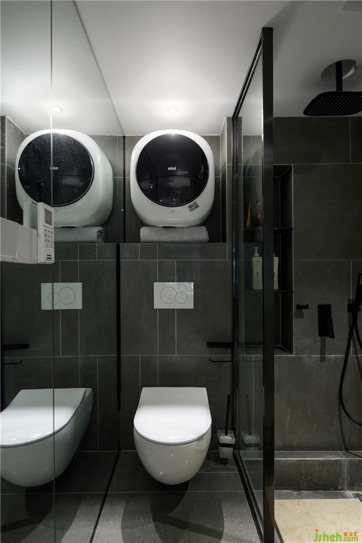 在不足2平米衛(wèi)浴的空間里,干凈的灰色磚藝術(shù)拼貼給人以力量感,與整體空間呼應(yīng),不失統(tǒng)一,壁掛洗衣機(jī)有點(diǎn)萌,頂噴式花灑與下沉式淋浴區(qū)遙相呼應(yīng),讓整體看起來更加自在隨心。多樣式燈光的運(yùn)用,拉開了空間的虛實(shí)對(duì)比關(guān)系,豐富了層次,端正穩(wěn)重又不失秩序井然。