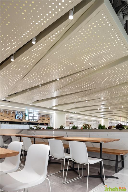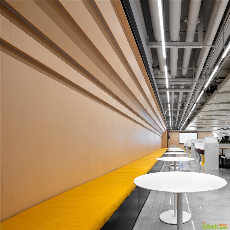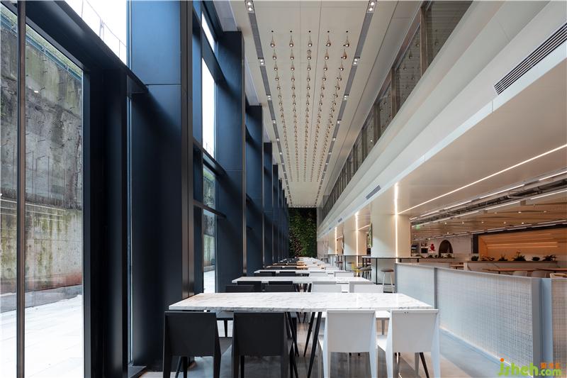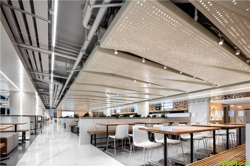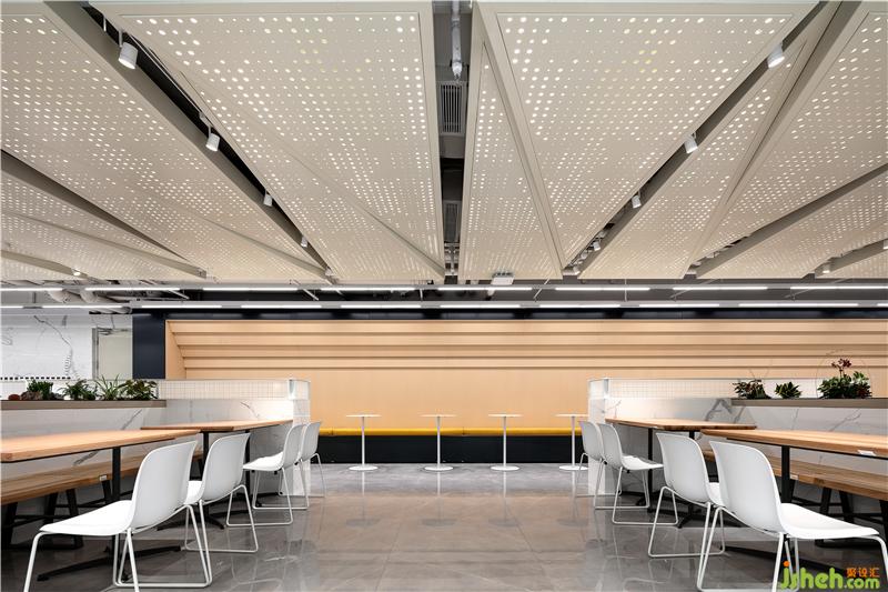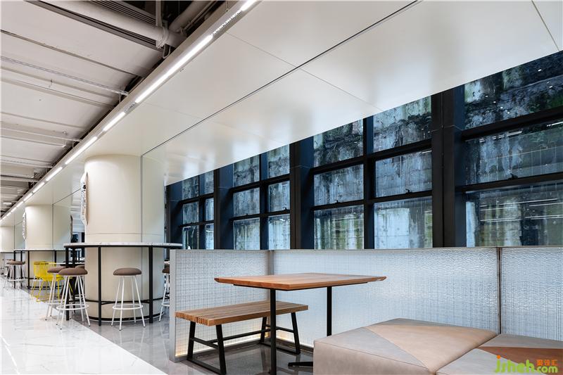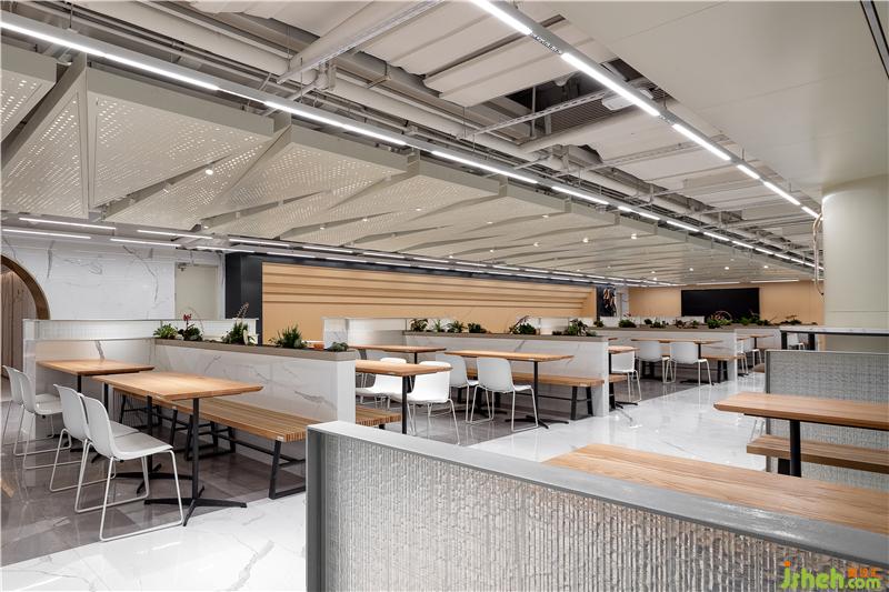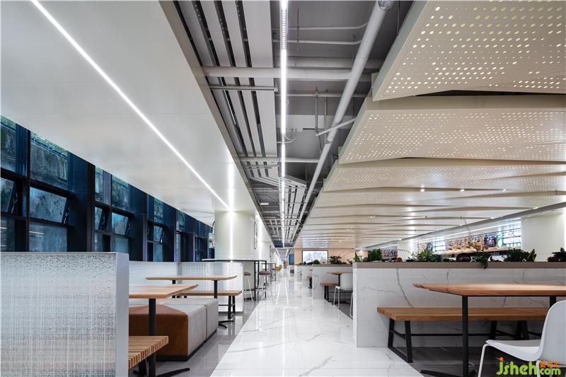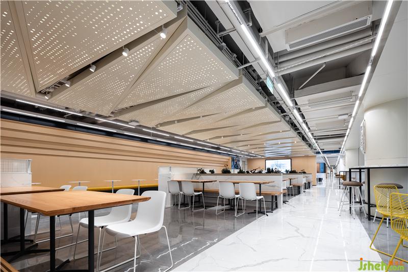 首先在就餐區(qū)的功能分布上,除了具備樓上具備的功能外,我們又在咖啡吧附近增加了更加舒適的卡座區(qū)域,為員工提供了訪客接待,小組討論,會議和休閑的功能。