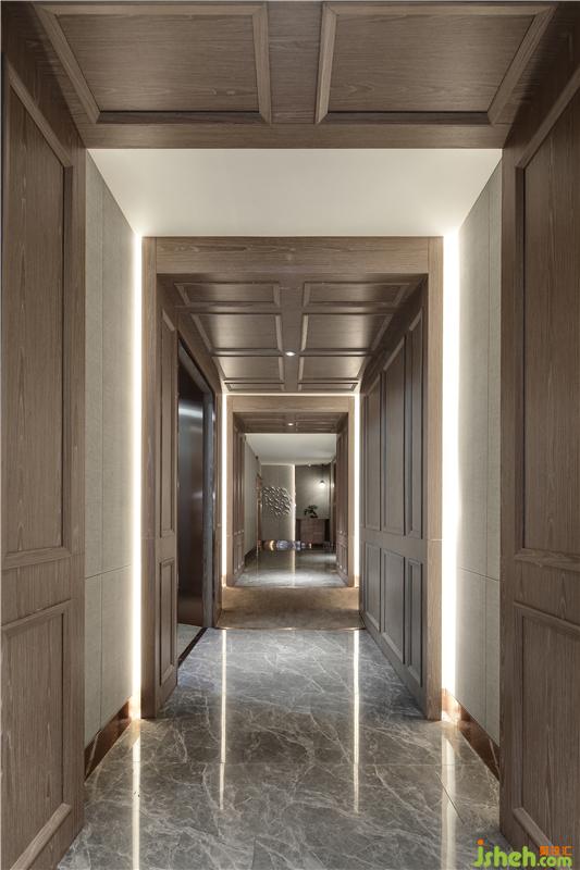 選材:秋香木飾面,古銅色不銹鋼,仿大理石瓷磚