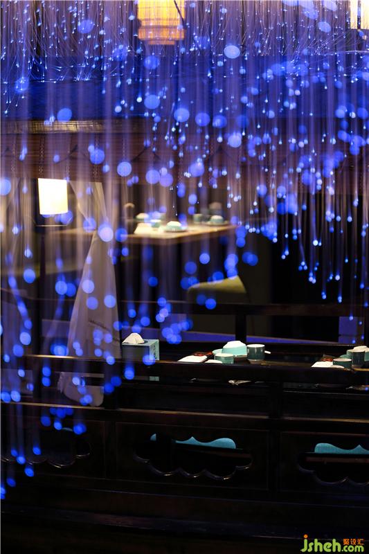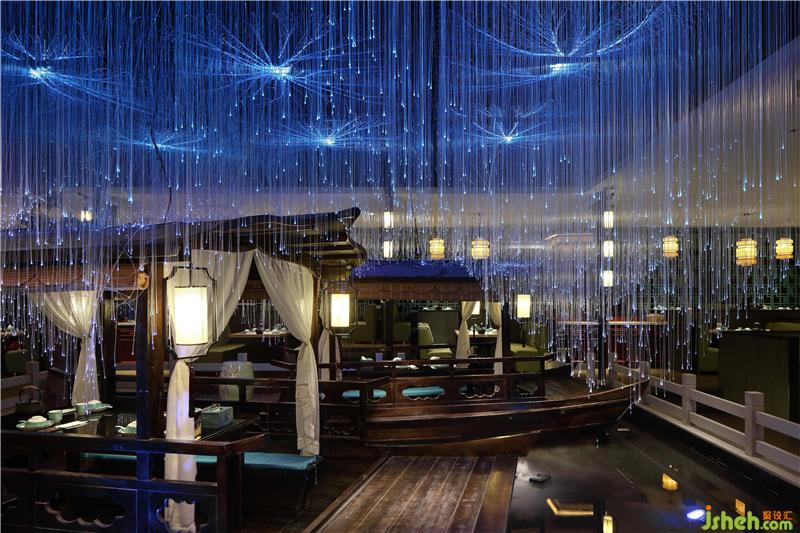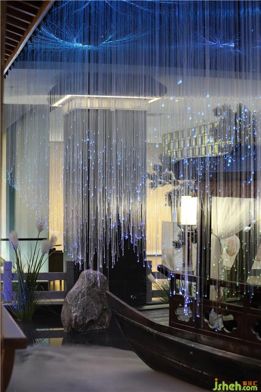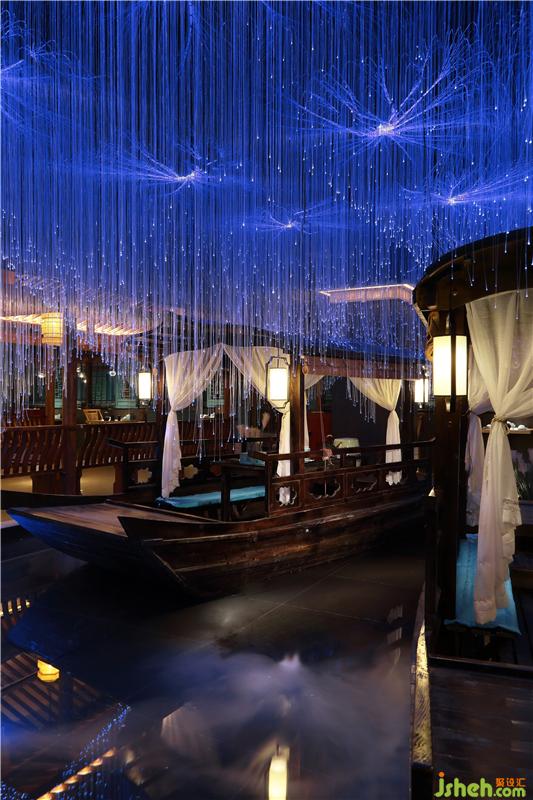 二層大面積采用了光纖燈,起伏連成一片,形成感官上的幻覺——星空。此時(shí),泛舟江上或駐足岸邊,仰望星空,繁星點(diǎn)點(diǎn),追溯一種向往的生活體驗(yàn)。