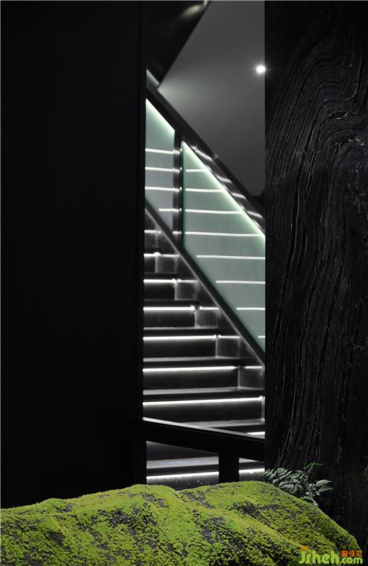 設(shè)計(jì)師在渝鄉(xiāng)辣婆婆空間塑造上,也充分考慮了重慶山水的特色。入口的小橋引渡,采用了大理石材質(zhì),這是設(shè)計(jì)師有意弱化了“險(xiǎn)”的特點(diǎn),放大了自然的意境之美,從而將客戶帶入到放松的狀態(tài)中。漫步過水霧繚繞的小橋,看前方點(diǎn)點(diǎn)明亮,上樓梯,會(huì)是怎樣一副圖景?