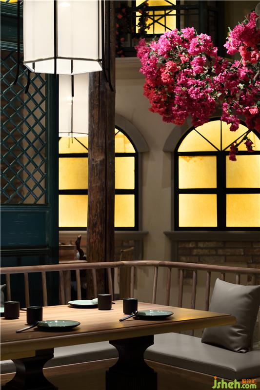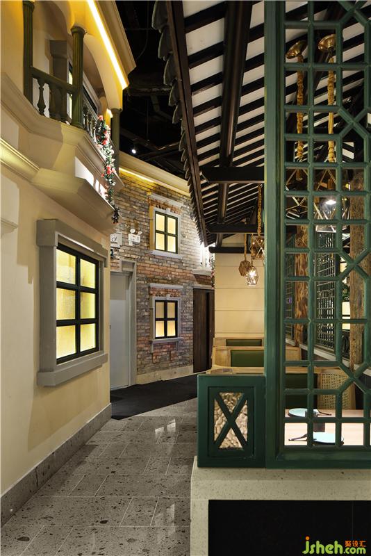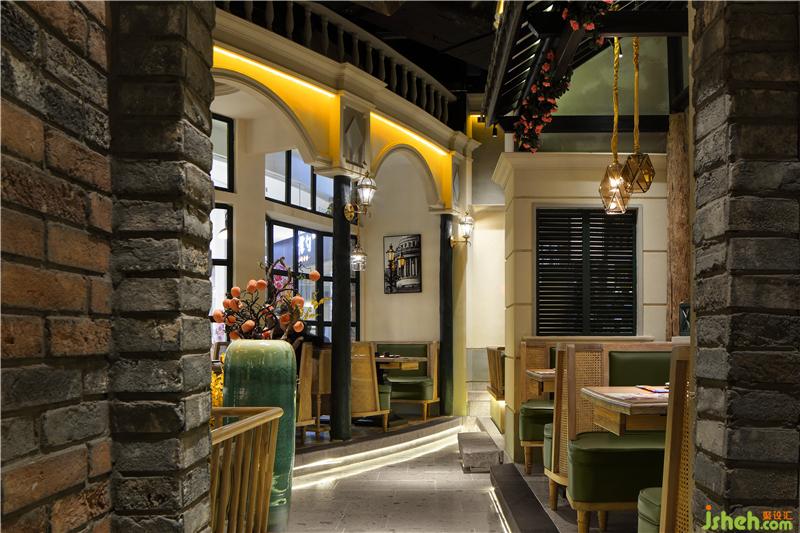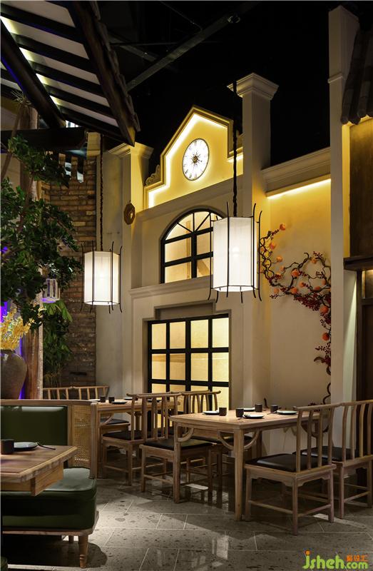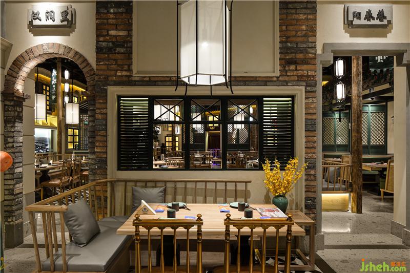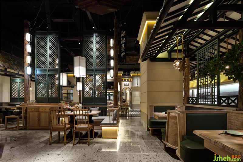 七彩石的地面,米色灰色肌理漆,青石臺(tái)階、墨綠色通高隔斷,灰瓦木柱二層小樓,我們?cè)谖⒖臻g里醞釀老城故事,用舌尖體驗(yàn)五味幸福。
