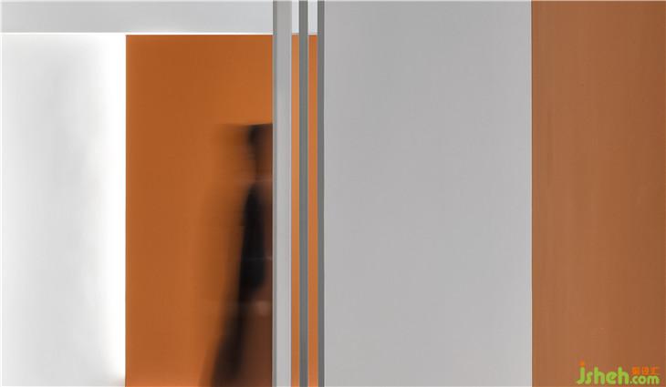 空間與人發(fā)生關(guān)系的過程也是情緒傳遞的過程,設(shè)計(jì)試圖用色彩營(yíng)造情緒與空間使用者去發(fā)生關(guān)系,橙色是阿里巴巴的企業(yè)標(biāo)準(zhǔn)色,橙白色彩關(guān)系營(yíng)造出輕松活力、散而有序的空間體驗(yàn)。