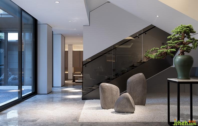 本案摒棄矯揉造作的設(shè)計(jì)元素,回歸本源。以黑白灰為主色調(diào),大面積留白與質(zhì)樸的木質(zhì)材料相得益彰,使光與影在其中相互交錯。在空間中游走,用它那時而傲慢,時而嚴(yán)肅,時而純凈的姿態(tài)來回切換,直到找到屬于空間的自己。