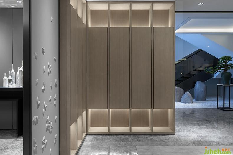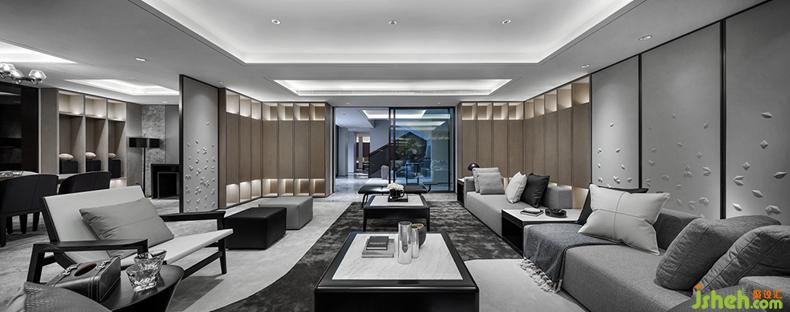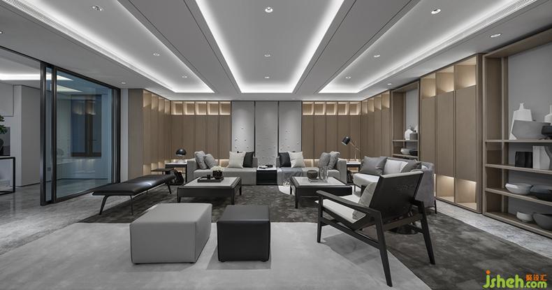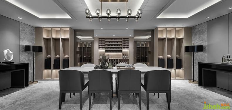 移步到休閑區(qū)紅酒區(qū),它是另一片天堂。休閑區(qū)家具整體布置走的非對稱原則,紅酒區(qū)則是對稱原則,家具款式簡約大氣。筆直的線條加之細節(jié)人性化撞角處的弧形處理帶來的設計感,同時考慮人體工程學的舒適度。家具的材質上,親膚細麻布料配上柔軟的磨砂皮及半啞細皮,高冷的白色大理石,啞黑的開放漆木紋與槍黑無指紋不銹鋼腳。營造出放松、舒適的休閑空間。打開紳士的臺燈落地燈,在這微醺的環(huán)境下,倒上紅酒,細細品嘗不一樣的人生,正所謂:酒不醉人,人自醉。