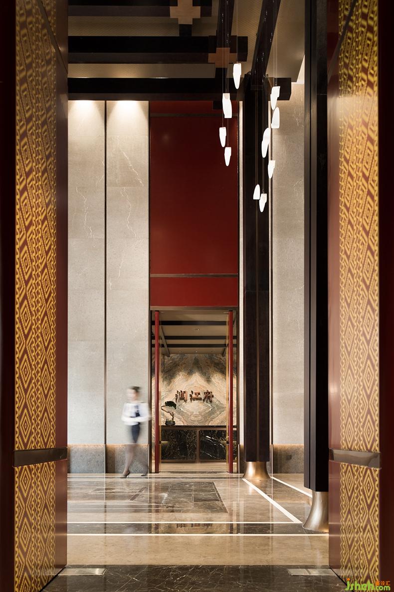 空間序列的表達(dá)上采用了中軸線序列漸進(jìn)方式與園林的行游動(dòng)線結(jié)合。中軸線的對(duì)稱序列關(guān)系,經(jīng)常被引申為儒家思想的禮序關(guān)系,及皇家的高大壯美,與宗教的肅穆與莊嚴(yán)也有暗合,而我更愿意去看到這種序列關(guān)系帶來的安靜,中正和韻律感。室內(nèi)設(shè)計(jì)師而園林的行望游居動(dòng)線,則讓空間的進(jìn)入感與空間層次感愈加豐富靈動(dòng)。