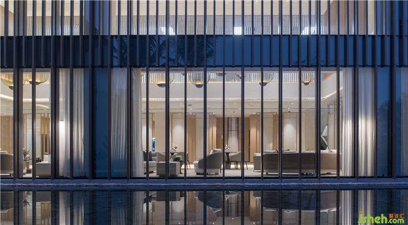 一池半海售樓處是標(biāo)準(zhǔn)的L型單體兩層建筑,整體挑高的玻璃幕墻,即便是在室內(nèi),也能把中庭的水景一覽無(wú)余。裝修公司